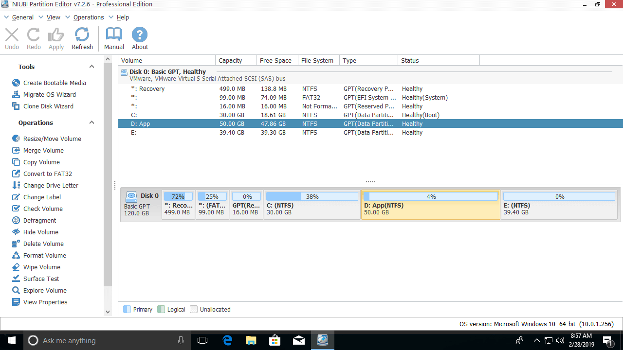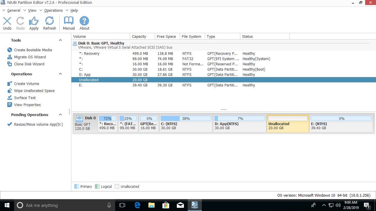 Download NIUBI Partition Editor and you'll see the main window with disk partition structure and other information.