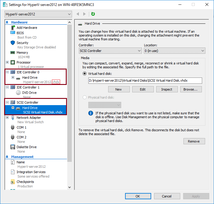 Secondly, if the virtual disk that you want to grow capacity is VHD (both IDE and SCSI controller) or VHDX with IDE controller, you should turn off the virtual machine before expanding.