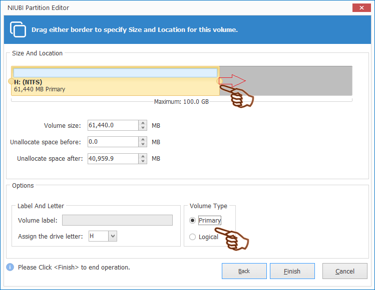 How to move partition to the right in Windows 10/8/7 with NIUBI: