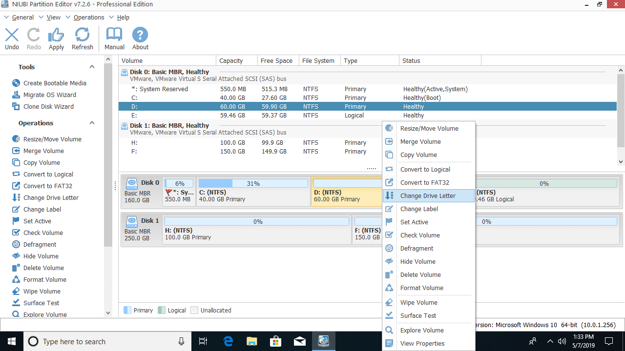 When there's contiguous unallocated space, it is very easy to move partition in Windows 10/8/7 computer, just drag and drop on the disk map and only 1 step is needed. If you use hardware RAID arrays such as RAID 0/1/5/10, do not break RAID array, follow the same step below.
