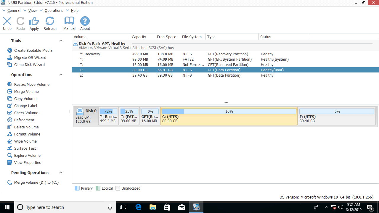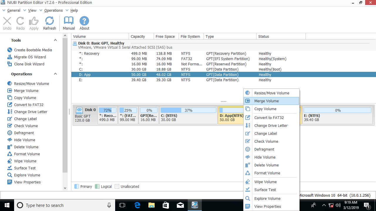 Steps to merge partitions in Windows 10/8/7 with NIUBI Partition Editor: