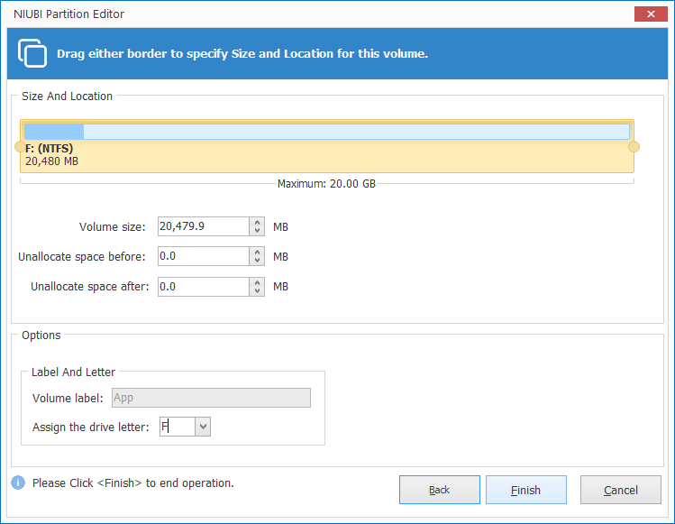 This method is used to exchange the position of a volume and adjacent Unallocated space on either side. Remember to drag the middle position to move.