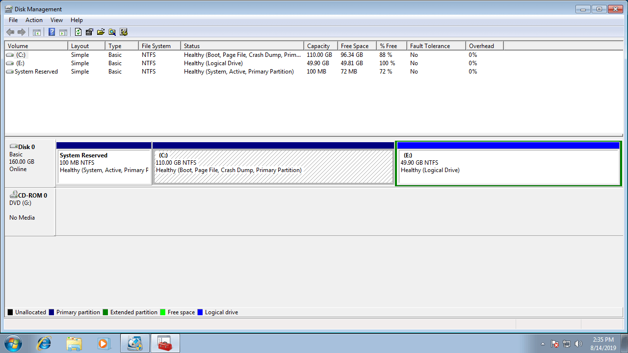 It is easy and fast to merge partitions with Windows 7 Disk Management, however it is not the best tool because of many limitations. Preconditions to combine partitions with Windows 7 Disk Management: