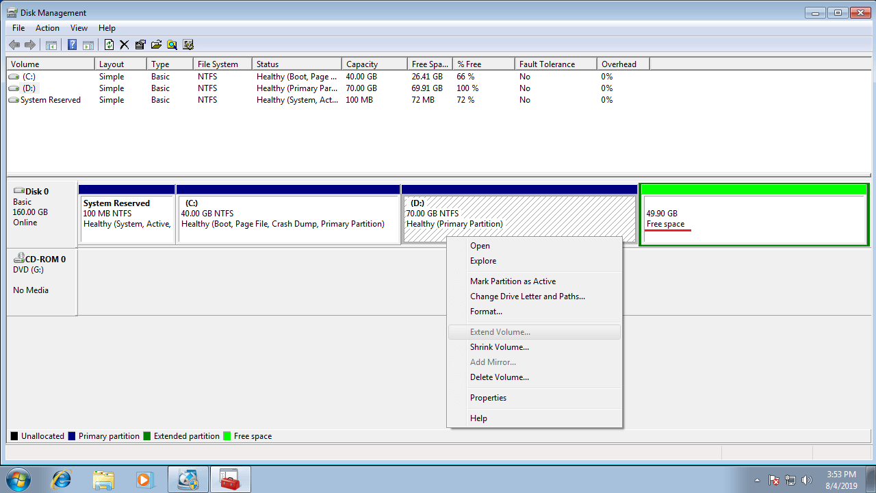 Guide to extend partition/volume in Windows 7