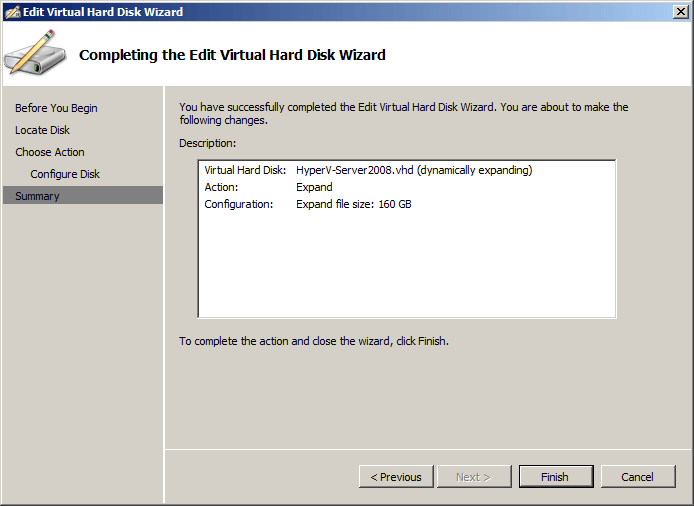 Steps to increase/expand virtual disk size of VHD in Windows Server 2008 R2: