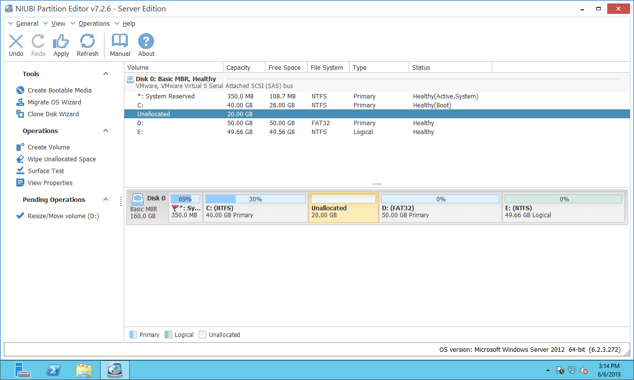 How to combine unallocated space on Windows Server 2012 R2 with safe tool: