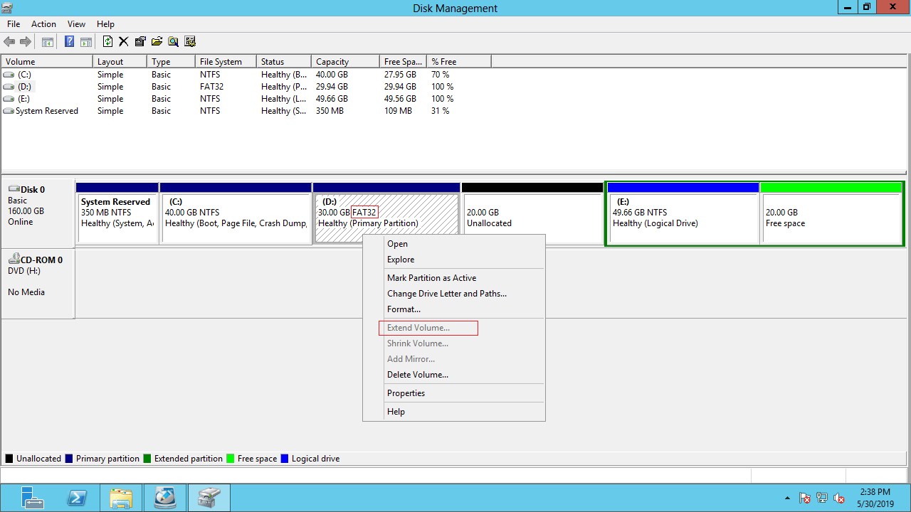 How to address Extend Volume greyed out on Server 2012/2016/2019/2022: