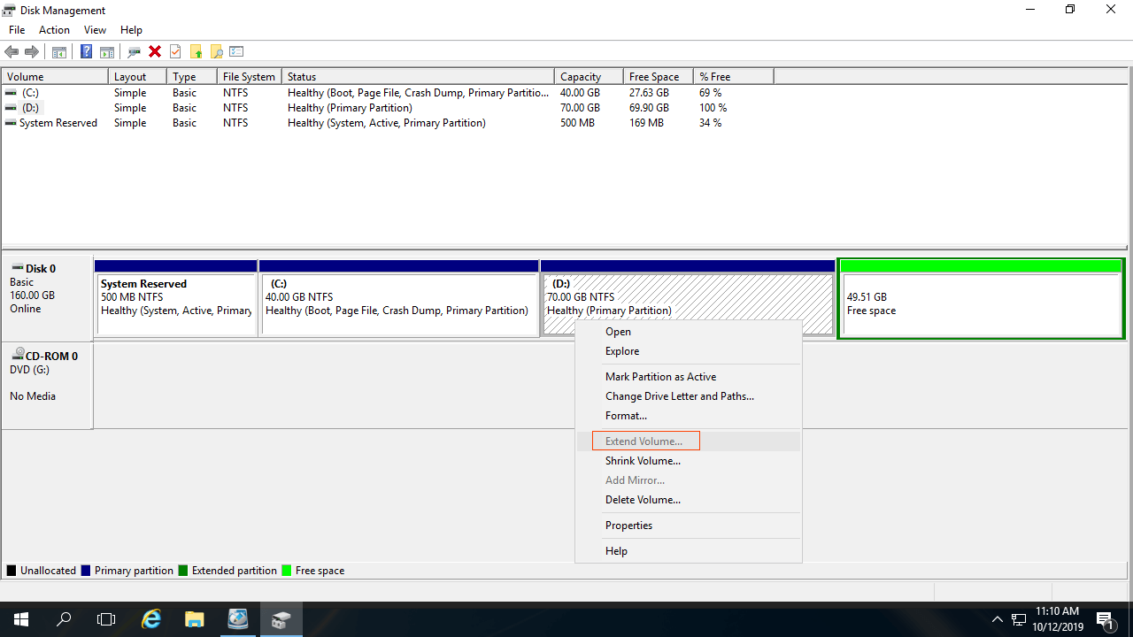 If want to extend RAID partition in Windows Server 2016 or extend virtual partition in VMware/Hyper-V, follow the same steps, there's no difference.